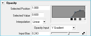 En opacity vamos a hacer algo similar. En opacity input ponemos y gradient, y en el gráfico vamos a crear una media parábola.