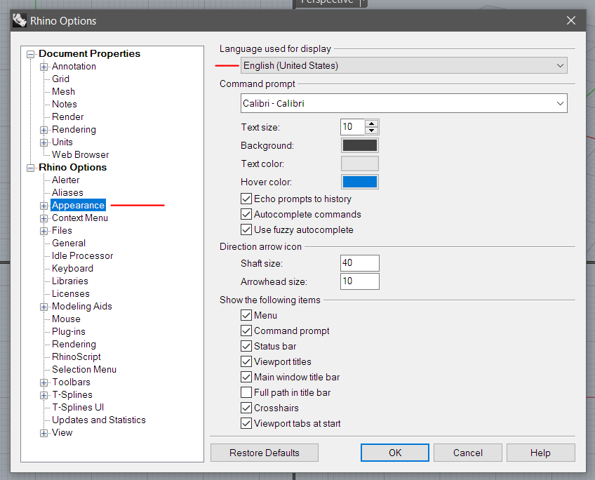Idioma en Rhinoceros 5