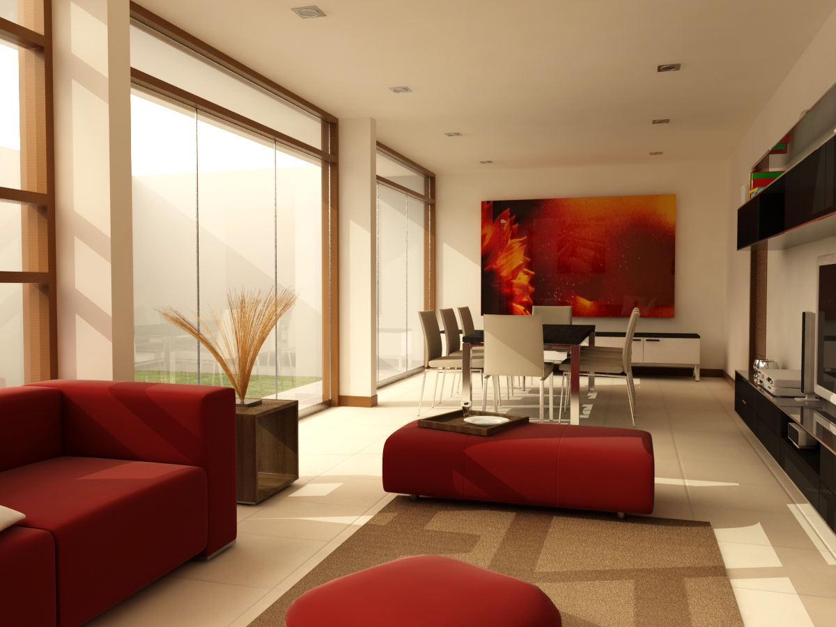 Hola, en la interior creo que está muy amarilla la imagen, tal vez la luz de la ventana es muy amarilla, es un gusto personal supongo, los materiales están bien, la otra cosa rara, en la imagen de la psicina hay una luz debajo de lo que parece un lavadero ¿no? No debería filtrarse por arriba de esa forma como si fuera una mancha, trata de arreglarlo, me gusta la iluminación en el agua.
