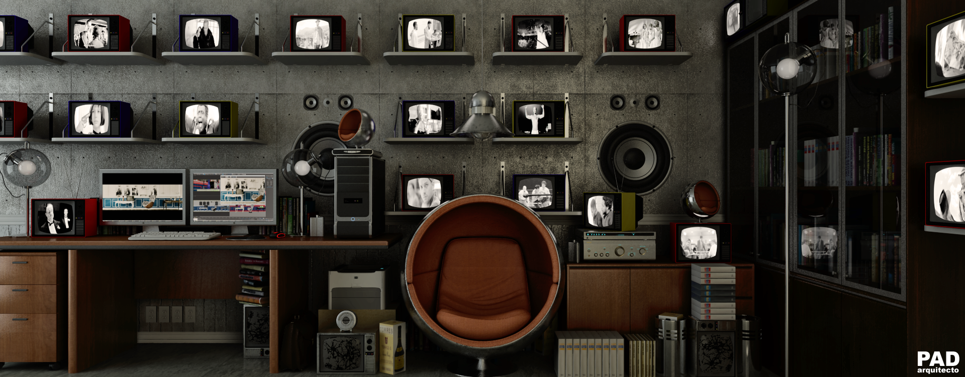 Qué tal de nuevo. Esta genial la composición, la iluminación, los matices. Lo único es el material auto iluminado de las televisiones, se me hace un poco fuerte, tal vez si generara algunos brillos y fuesen un poco más tenues o con menor intensidad.