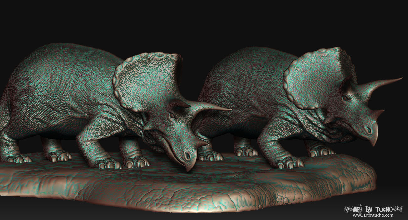 Este es el primero de la serie, el triceratops, está casi acabado, creo que solo le añadiré algunas plantas y piedras pequeñas en la base para hacer un poco más interesante la imagen.