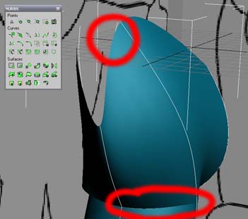 Hola. Estoy diseñando un personaje en 3ds Max utilizando Nurbs. He terminado con una pierna y la mitad del torso. Pero los hice separadamente y ahora necesito unirlos. Me está quedando bonito, sin embargo, necesito unir los bordes de las superficies de la pierna con el torso y requiero de hacer espacio para luego poner el brazo. Adjunto una imagen encerrando con círculos mis puntos a atacar.