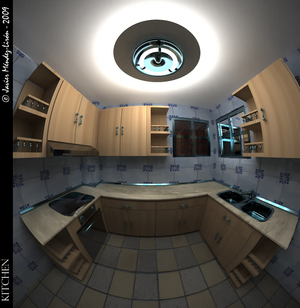Pues estoy con Jorge, ese tipo de vista es espectacular, pero no para mostrar una cocina, y aparte está poco trabajada la iluminación y materiales, pienso yo. Saludos.