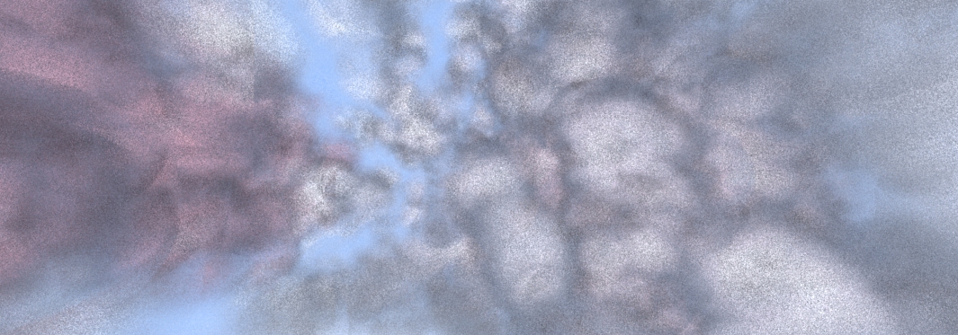 Gracias por responder hori hjm, pero he encontrado ya la solución. Era bastante simple: un problema de medidas. Al trabajar en centímetros, las nubes eran pequeñas, el noise se acentuaba mucho más. En las nubes grandes, también hay noise, pero se difunima. La ventaja de haber tenido este error tan tonto, es que he aprendido bastante sobre los parámetros, así que, si quieres tener ese efecto Bkeping, sólo tienes que hacer las nubes pequeñas.