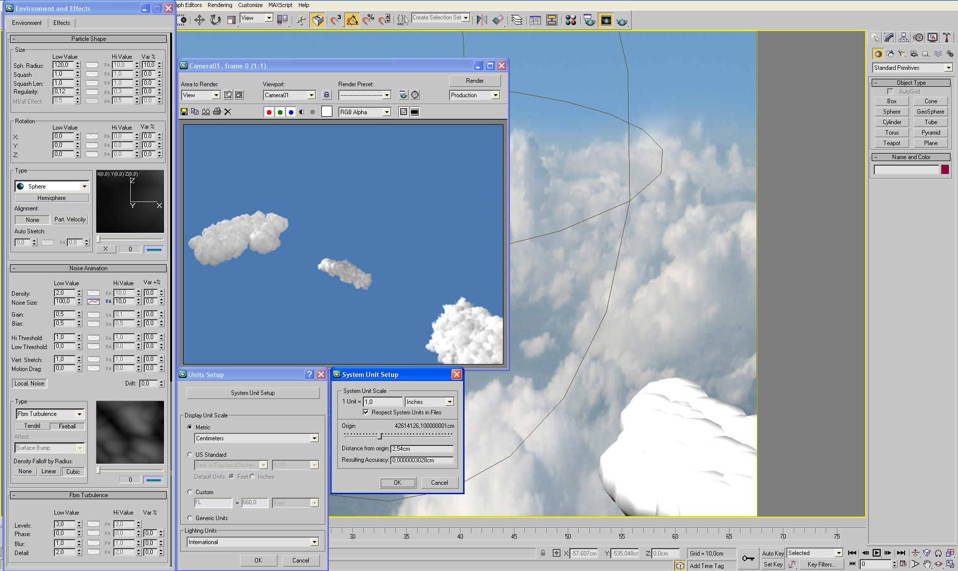 Hetors, el problema no es del Afterburn, el problema es que hay que trabajar con las medidas correctas. Es lógico ¿no? No vas a poner nubes que midan centímetros. Cuando empecé la prueba, lo hice en un archivo por defecto, y ni me fijé en las medidas. O haces de todo un grupo y lo aumentas 10.000 veces, o te toca empezar de 0.