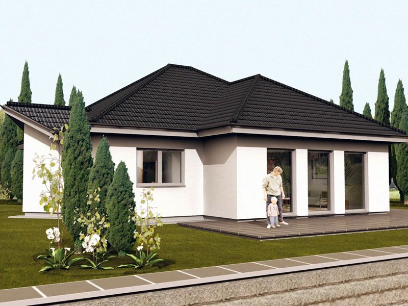 Hola. Los cipreses del primer plano parecen demasiado pequeños. El cielo no mola nada, deberías haberle puesto un fondo fotográfico. La imagen tiene zonas muy quemadas en las paredes, pero por el contrario otras zonas como el césped y el fondo están un poco oscuras y poco contrastadas. El reflejo de las baldosas de la entrada sobra. Ganaría bastante si hubieras modelado las tejas e incluso los canalones, si es que lleva. La carpintería de ventanas y puertas no es atractiva, es un gris plano.