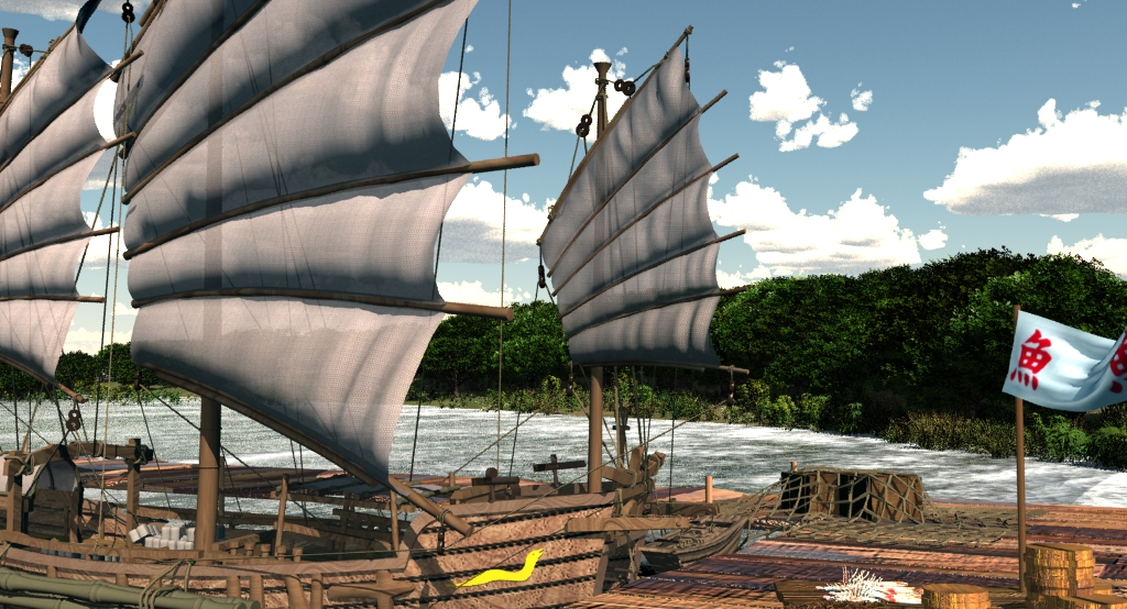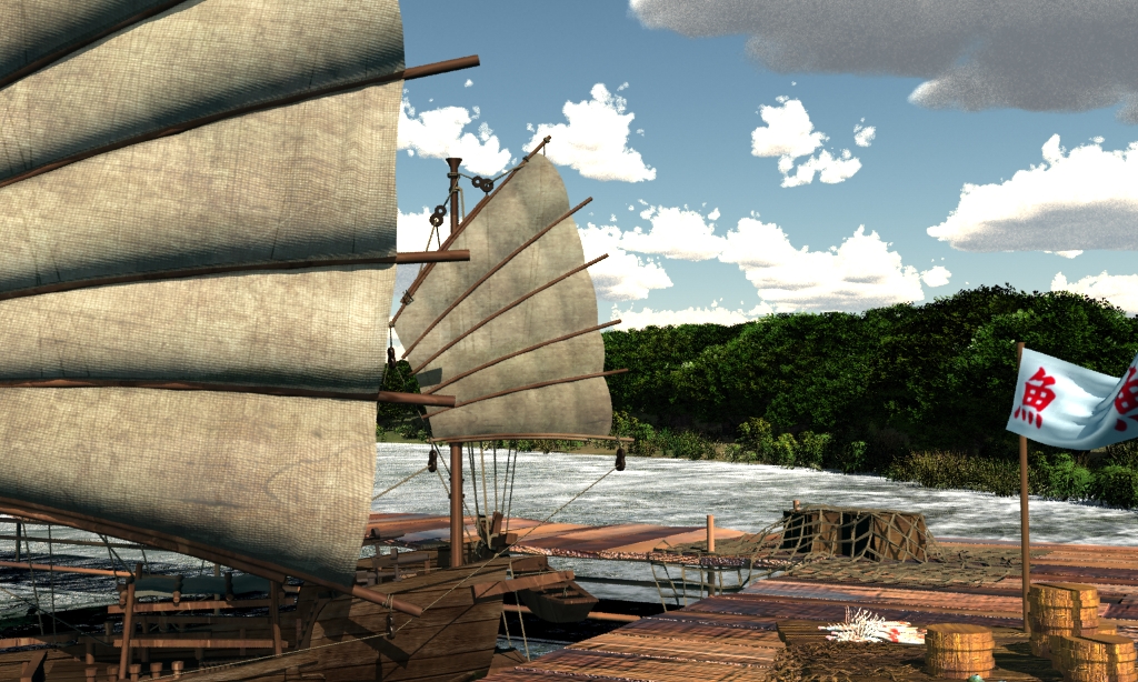 Aquí os dejo una imagen de un pueto japonés realizado en ·d max y Vue Xstream, aún tengo que retocar cosas y rehacer el suelo del puerto, pero a ver qué os parece. Un saludo.