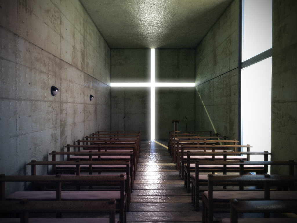 Hola. Aquí os pongo esta imagen que he hecho para practicar con modo, es una capilla del gran Tadao ando en Osaka. No es exactamente igual que el original, ya que lo hice basándome en una fotografía, no tenía los planos. Un saludo a todos.