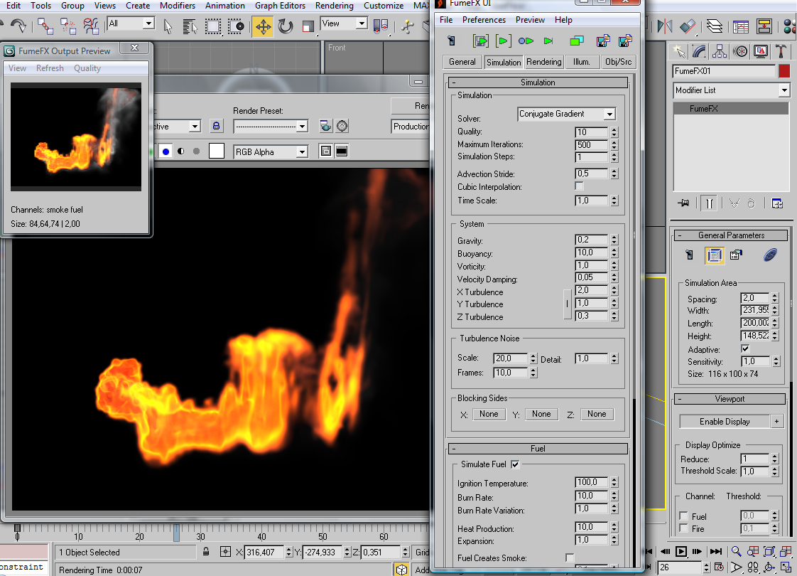 Hola amigos de 3d poder. He estado utilizando FumeFX y la verdad, ya e logrado controlar un poco las llamas, pero aún no logro poder darle una hermosa calidad.