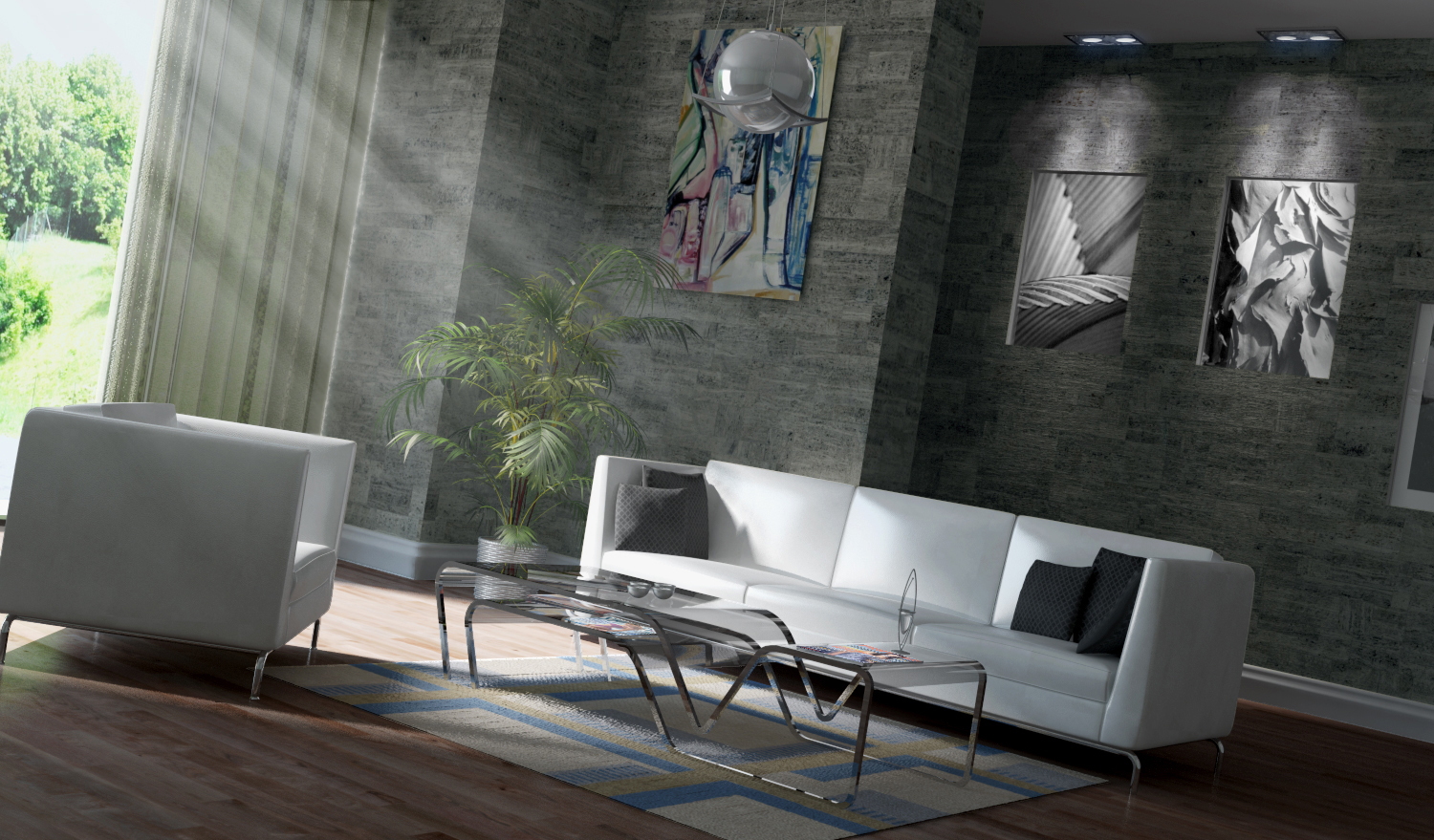 Hay algunas cosas, por ejemplo, creo que tienes algunos problemas de antialiasing, hay algunos sitios donde se ven un poco los bordes serrados, también hay una zona en la derecha de la imagen, en la zona del rodapié, parece como si tuvieras un splotche, no sé si será efecto de la iluminación, pero se ve raro y por último y esto ya es cuestión de gustos, esa pared tiene muy buena pinta, con un poco de Bump, y desplazamiento y tamibien algo de reflexión, muy suave, podría quedar muchísimo mejor. Un saludo y buen trabajo.