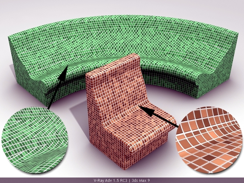 Hola, soy muy novato en 3ds Max y una de las cosas que más me cuesta es el mapeado de los objetos curvos. Adjunto 2 imágenes con objetos prácticamente curvos donde se aprecia una textura de gresite (básicamente es una textura de Vray con tiles) que no se adapta correctamente. He buscado en tutoriales y en foros, pero no encuentro nada que me ayude con este tipo de objetos. Espero que puedan ayudarme.