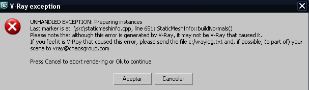 Hola amigos del 3d. Tengo una duda, estoy usando 3ds Max y Vray para hacer el render de una animación, el problema está en que cuando mando el render me aparece un cartel extraño que nunca me había aparecido, es más, el programa se cuelga y se cierra.