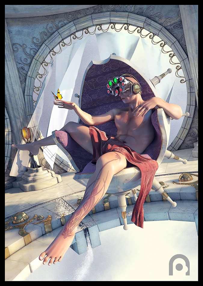 Jo*er, fantástico render, solo me parecen extraños los dedos de los pies, pero es una minucia, en conjunto es acojonante. Puede que esté todo algo sobreiluminado para mí gusto, preferiría más contrastes, pero está genial. Saludos.