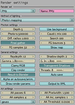 note: gamma and gamma input values are 1.8 because screen captures were done on the Mac versión of Yafray.