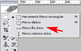 Creamos un nuevo documento según nuestras necesidades (yo en este caso he elegido uno de 200 por 100 píxeles) con el fondo blanco, seleccionamos la herramienta marco fila única.