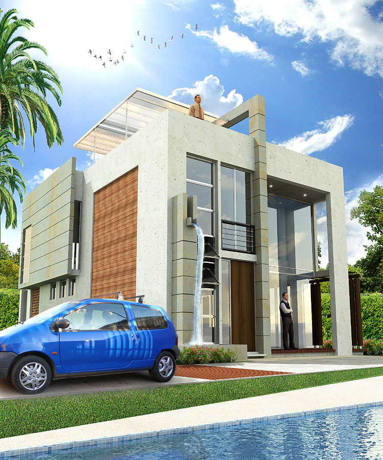 Hola, es un render pasable, pero todavía le queda un poco para ser un buen trabajo. Yo precisamente no soy nada amigo de meter personajes de ese tipo en los trabajos, por que matan el realismo, y son cutres a morir. Sobre todo, el de la terraza, siento ser duro, pero queda horrible cual capitán de barco tomando el aire.