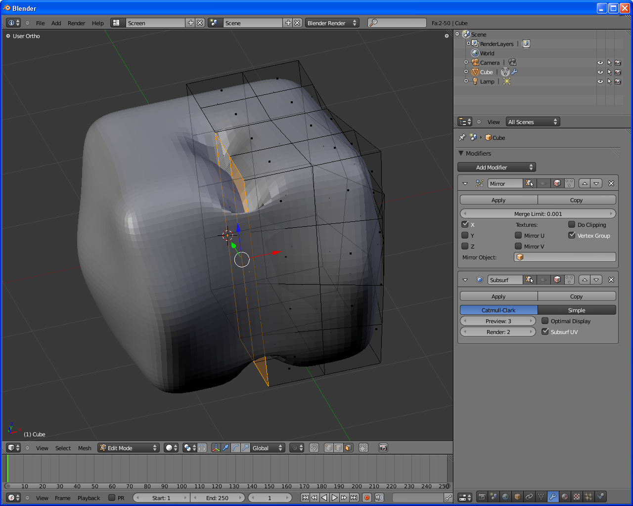 Acabo de modelar un auto con Blender, primero le di mirror para modelar solo un lado del auto, luego le di set Smooth y Subsurf para renderizar y ver cómo queda, pero sale horrible hay un problema en el Subsurf: