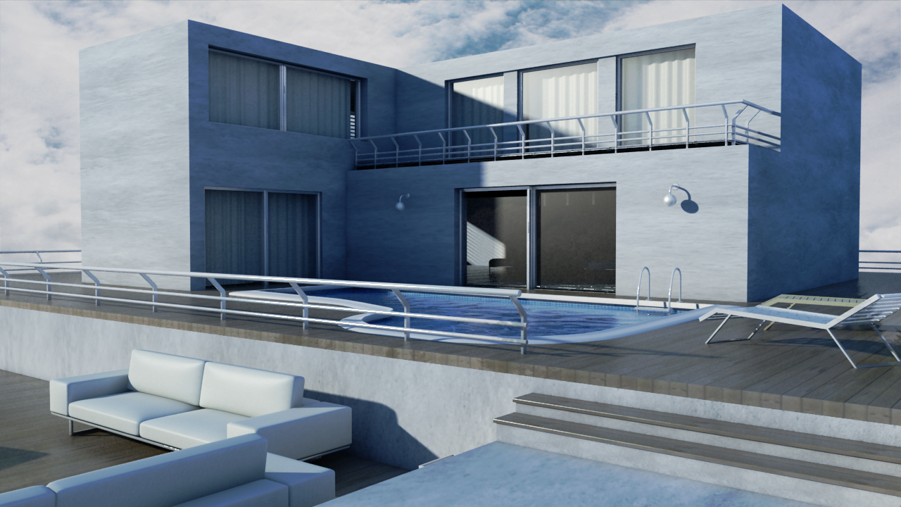 Hola Iván, que tal, el modelado se ve bastante sencillo, pero muy resultón, está muy bien, la iluminación y la postproducción es lo que no veo muy trabajada, podríasintentar de conseguir iluminación dentro de la vivienda para conseguir zonas de contraste, poner algo en el horizonte para que no parezca que estas en la cima del Everest cuando haces el render.