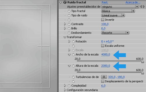 4. En las propiedades del efecto, modifica el ancho de la escala a 4000 y la altura a 2000.