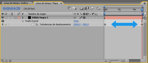 5. Anima la propiedad turbulencias de desplazamiento de 0, 0 a 2000, -500.