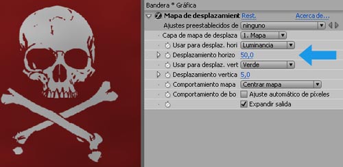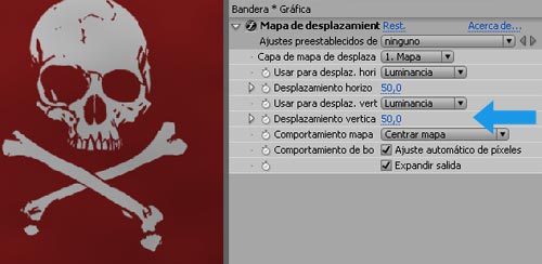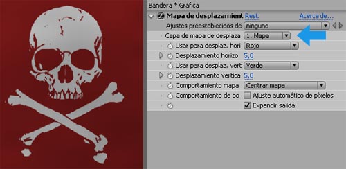 8. Aplica el efecto mapa de desplazamiento a ¨gráfica¨. Modifica la propiedad capa de desplazamiento a 1.mapa.