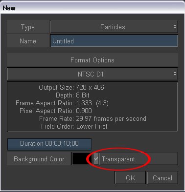 1. Lo mejor es asegurarse de crear la composición de tipo particles con fondo transparente. El modo de partículas en Combustion exige gran cantidad de memoria de vídeo y si no tienes mucha Ram, no es recomendable que intentes animar el generador de partículas, en lo personal prefiero exportar una película, para luego importarla ya renderizada.