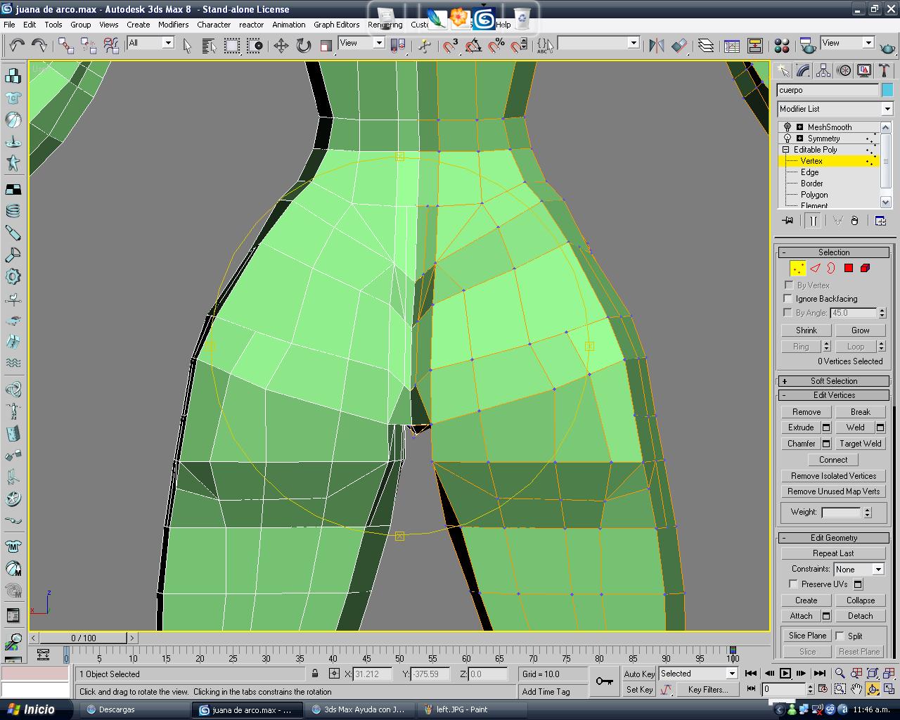 Hola a todos, es solo que no llevo mucho tiempo en esto de 3ds Max, pero tengo una duda con el tutorial de Juana de Arco, y a hice la cabeza y ahora estoy con el cuerpo, pero no me queda la pelvis como debería de quedar, no sé cómo hacer esto vuelva visible la arista diagonal para marcar el pliegue de la ingle. O sea no doy una con la pelvis quien me puede ayudar, ahora con lo demás todo bien.