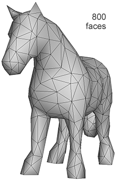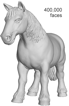 Ejemplo de un caballo, toda la jerarquía de este modelo de 13 millones de triángulos fue construida en 122 segundos, con un consumo de memoria de 680 Mb.
