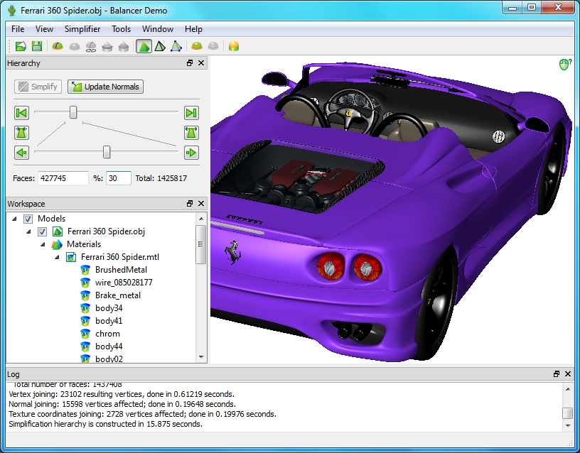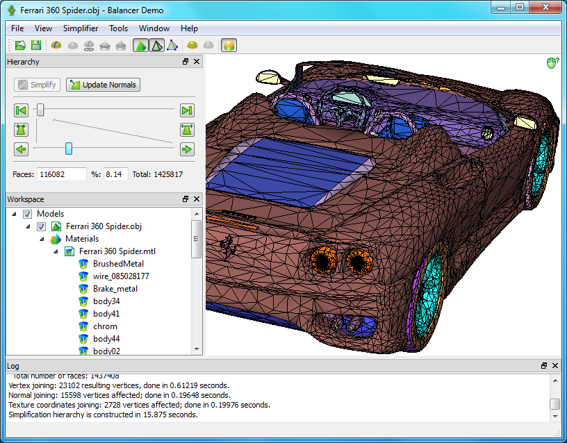 Balancer no suele necesitar más de 75 Mb de memoria para optimizar un modelo de un millón de triángulos en menos de diez segundos.