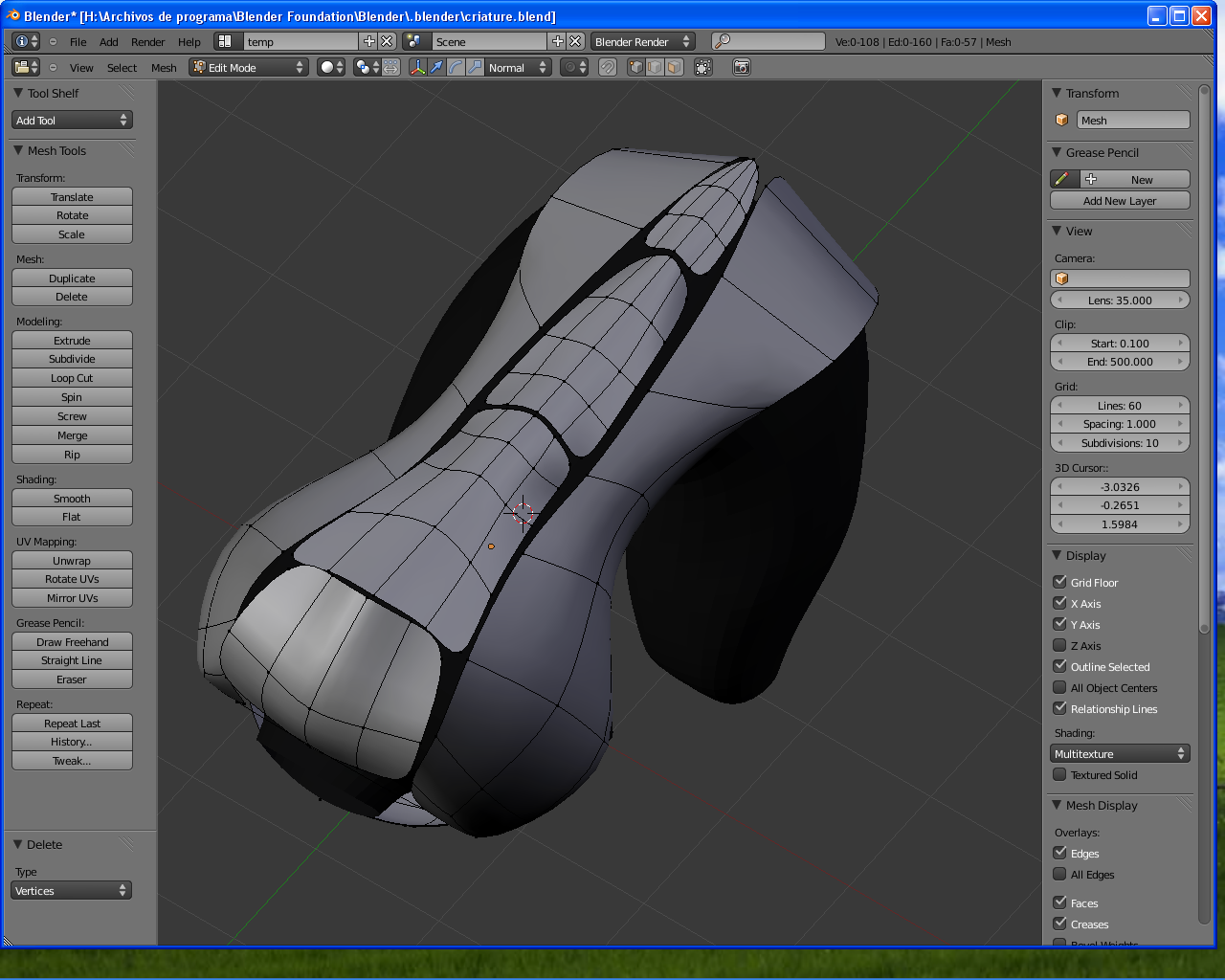 Como ya he dicho en algún mensaje, dedico cada día un rato a probar algunas compilaciones de Blender 2.5. Aunque ha día de hoy, casi trabajo más con estas que con la 2.49. Y nada mejor para probar que realizar algún proyecto. Había pensado usar algún.blend del Creature Factory, con el modelo ya un poco avanzado, (vienen los pasos del modelo del 1 al 130) pero, me he decidido a empezarlo de cero (quien dijo miedo?) y, en esas estoy. Iré subiendo aquí algún progreso para que opinéis y me metais en vereda si me voy por los cerros de Úbeda, y se acaba pareciendo más al monstruo de alien, que al creature original.
