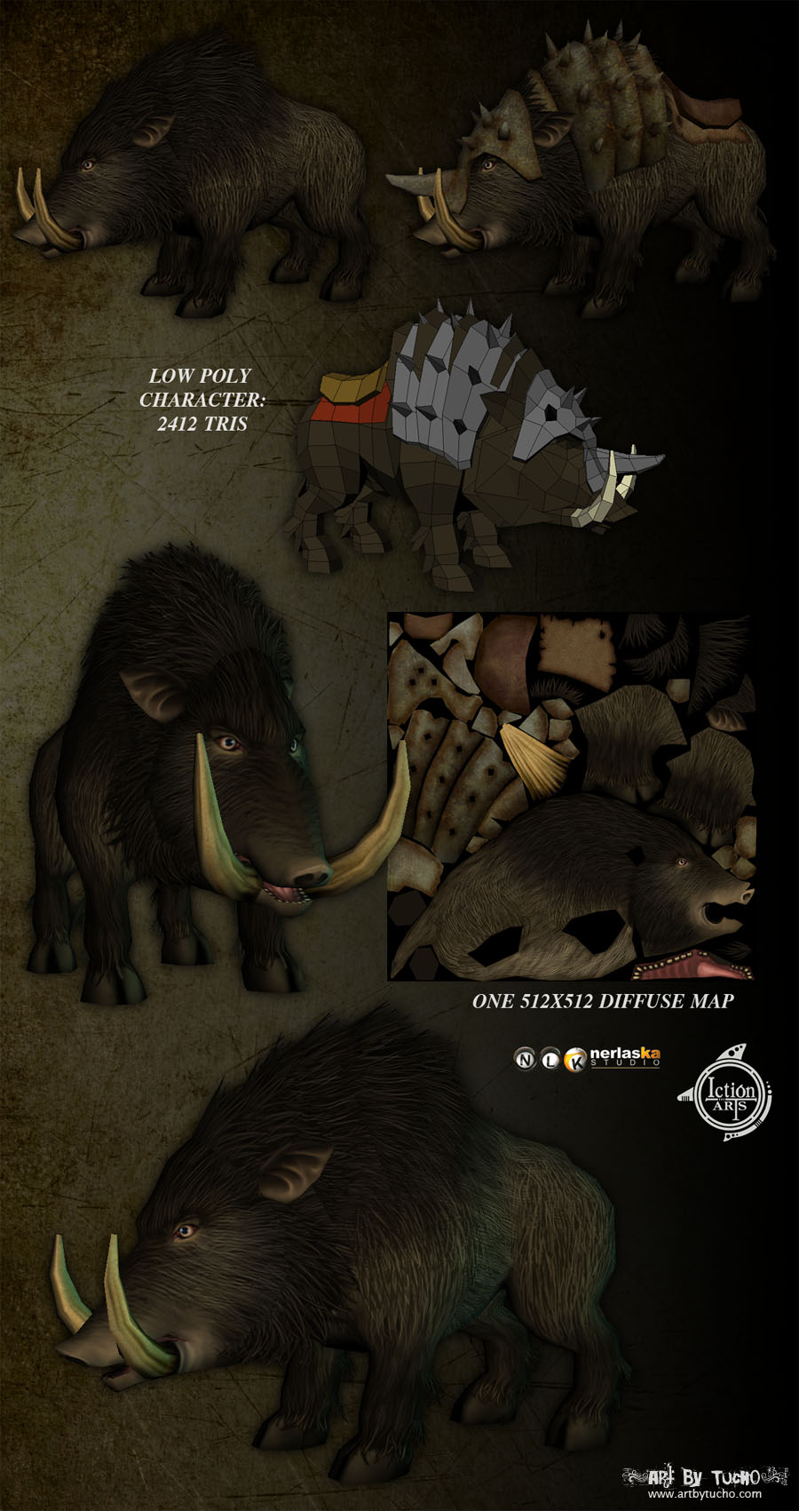 Hola gente, hace siglos que no publico nada por aquí, así que, ahí van unas cuantas imágenes. Estos son unos personajes que hice el año pasado para Nerlaska, aunque son super Low poly y solo llevan un mapa de Diffuse los he modelado igualmente en ZBrush para sacar un Occlusion map y emplearlo directamente sobre la textura Diffuse: