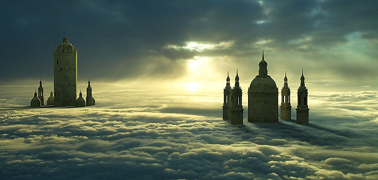 Buenas, vuelvo a dar la lata con otro Matte Painting / Camera mapping, esta vez con un escenario distinto. La idea es crear en este entorno un castillo sobresaliendo de entre las nubes, por ahora llevo esto, a ver cómo acaba.
