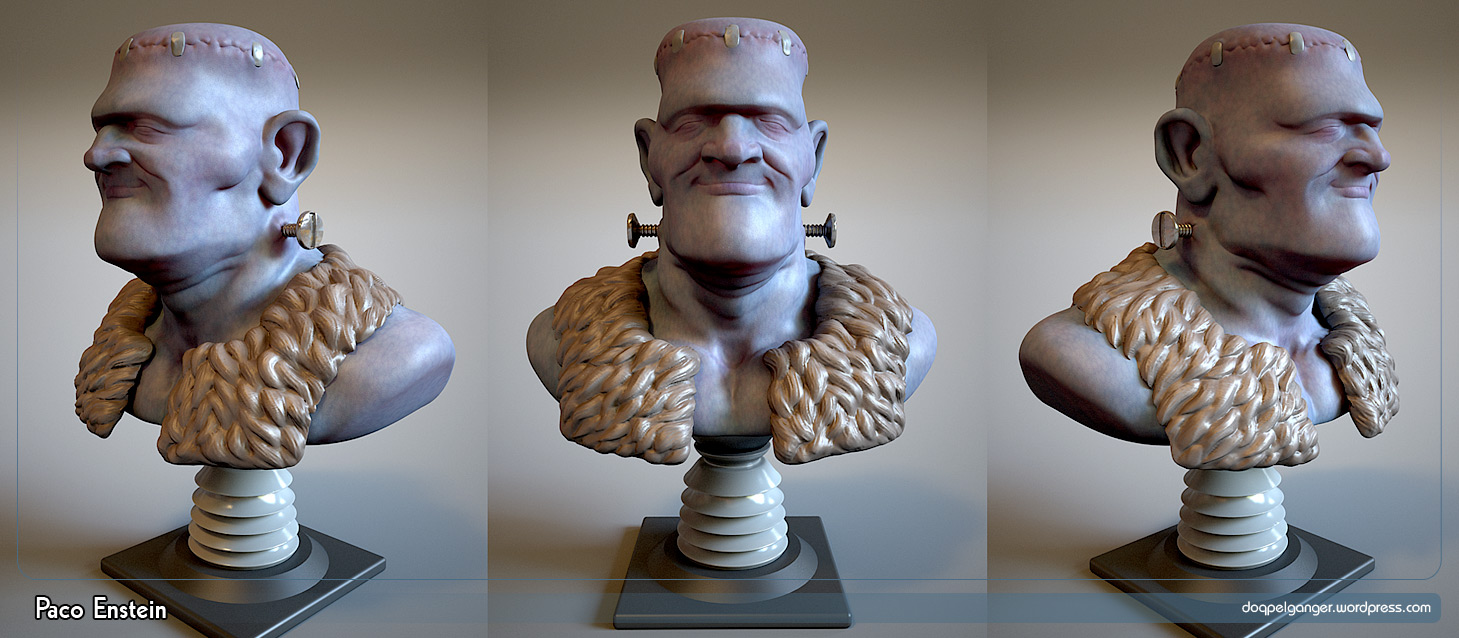 Nice Franky, ahora Paco enstein, polypaint simple, lo demás es procedural, render en Vray.