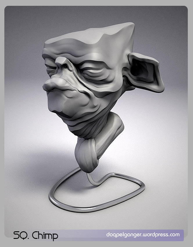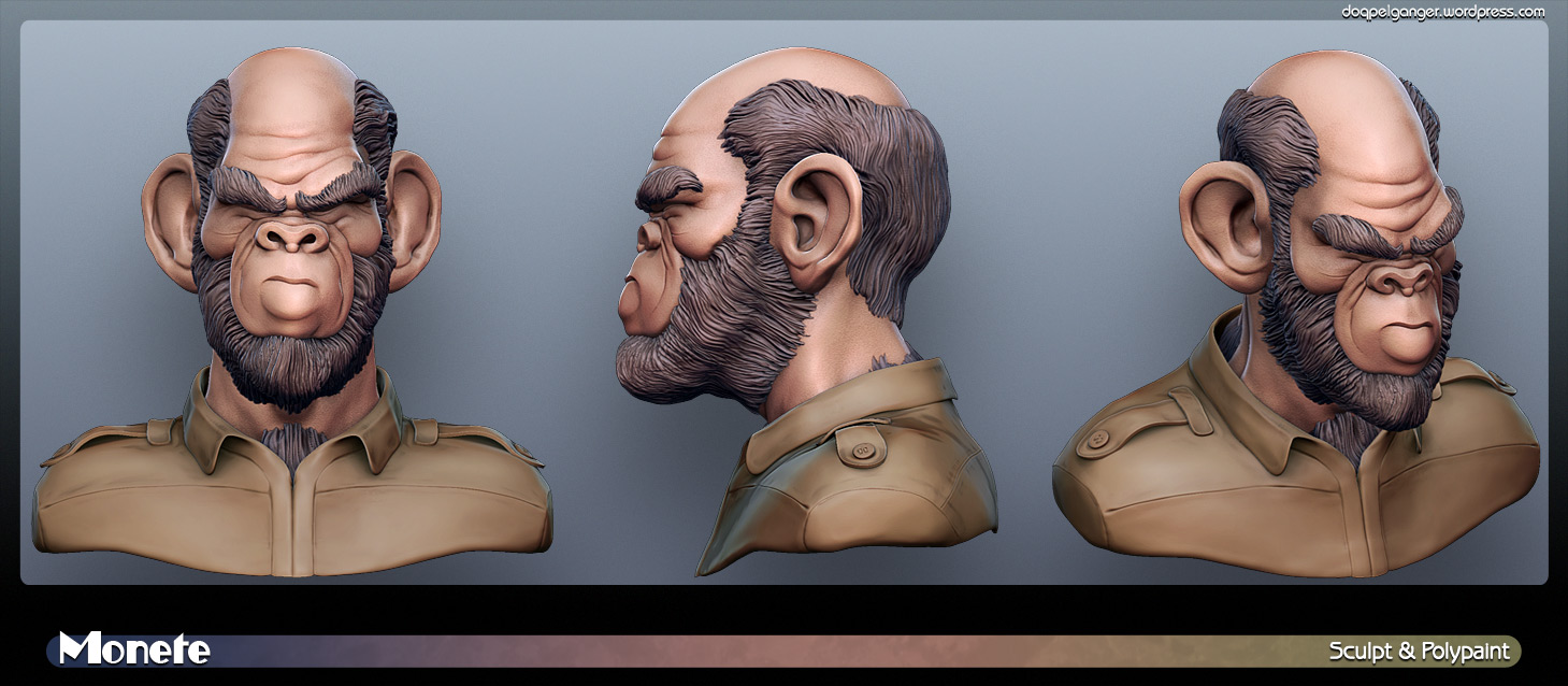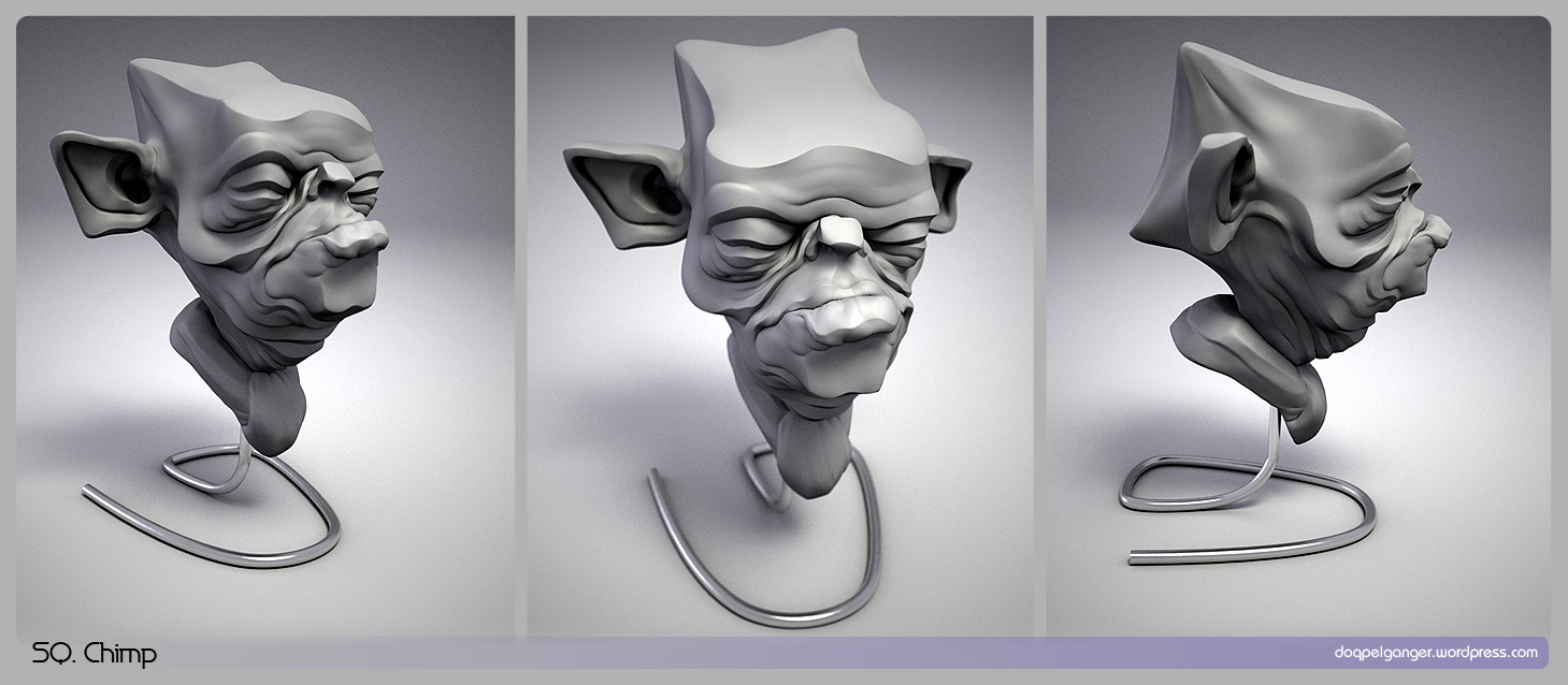 Chimpance cabezadado, modelado con ZBrush 3.0/3.1, vamos, que con las nuevas brochas flat y polish del 3.5r3 esto ya no tiene mucho mérito.