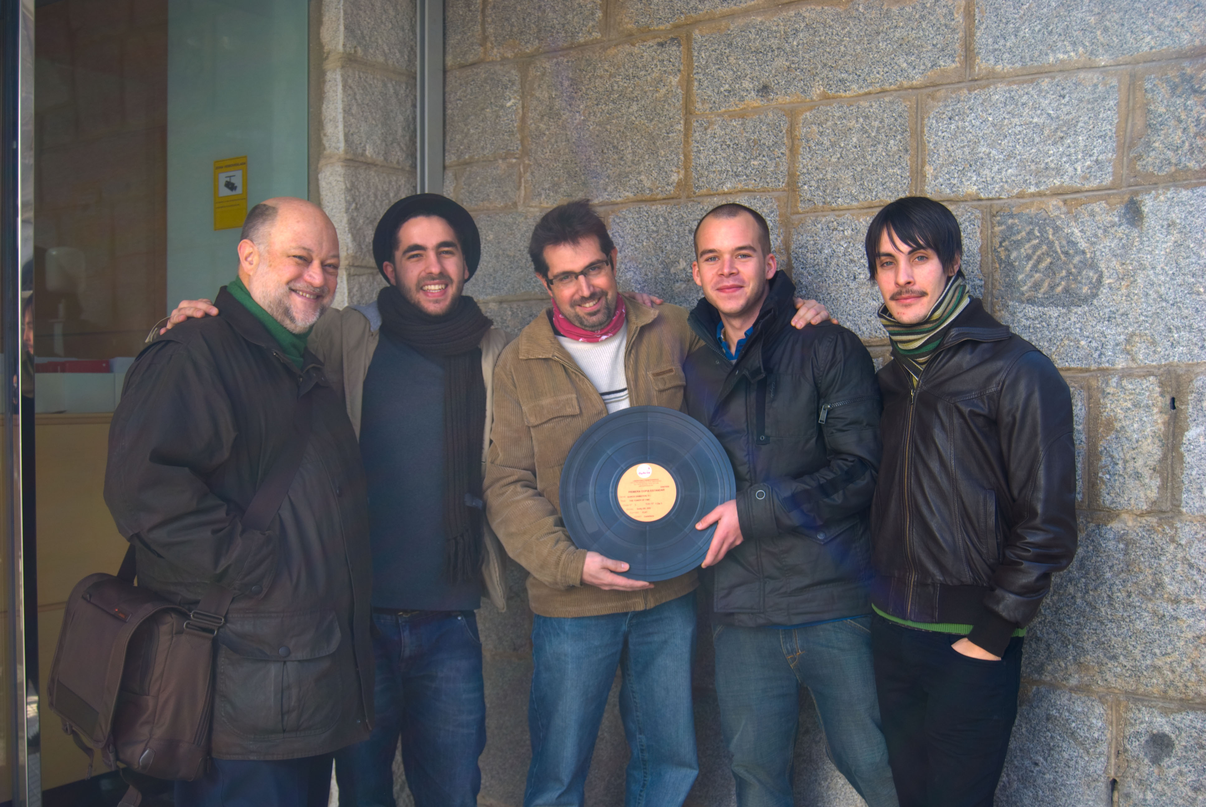 En la fotografía y de izquierda a derecha, podemos ver al doblador del gorila null, y el resto de integrantes que son antiguos alumnos de la escuela por este orden: Juan azar senciales que cursó la Carrera superior en digital media y que es el responsable del modelado y setup de personajes, José Luis Quirós - fundador de Quirós animation y que cursó con nosotros el master en animación de personajes, arnau ollé, responsable de la animación del corto y antiguo alumno del curso superior de animación de personajes y Jorge Alonso, antiguo alumno del master en animación y responsable de modelo junto con Juan azar.