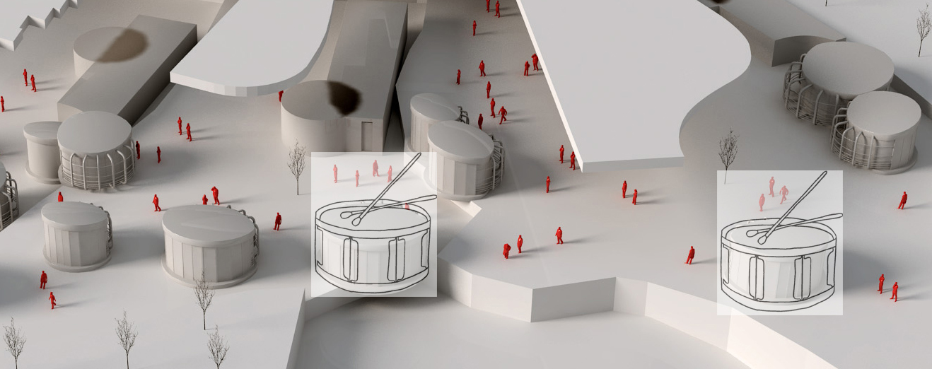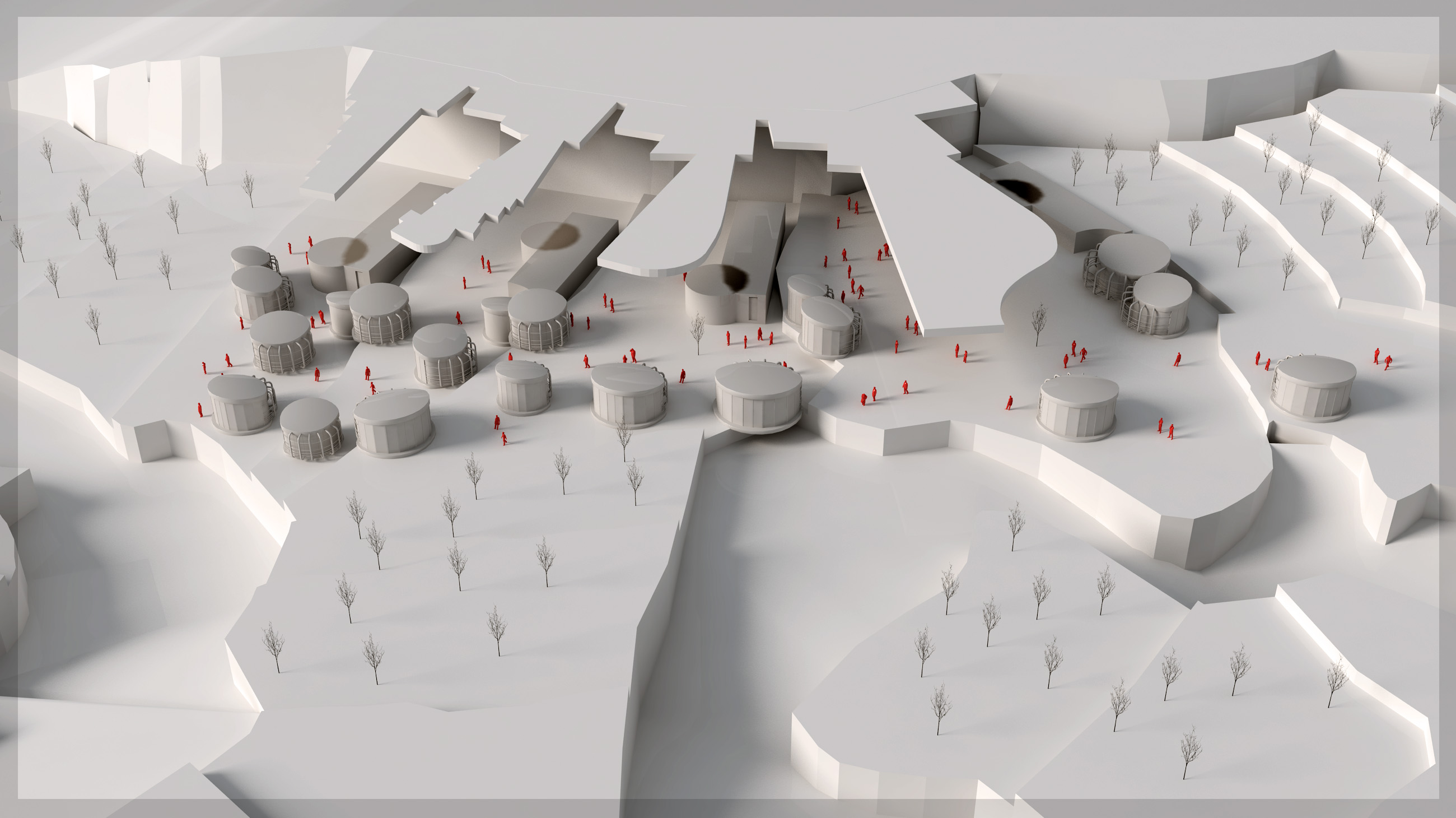 Hay artefactos donde intersectan los cilindros con los otros edificios. A mí también me toco hacer uno así estilo maqueta de cartón pluma.