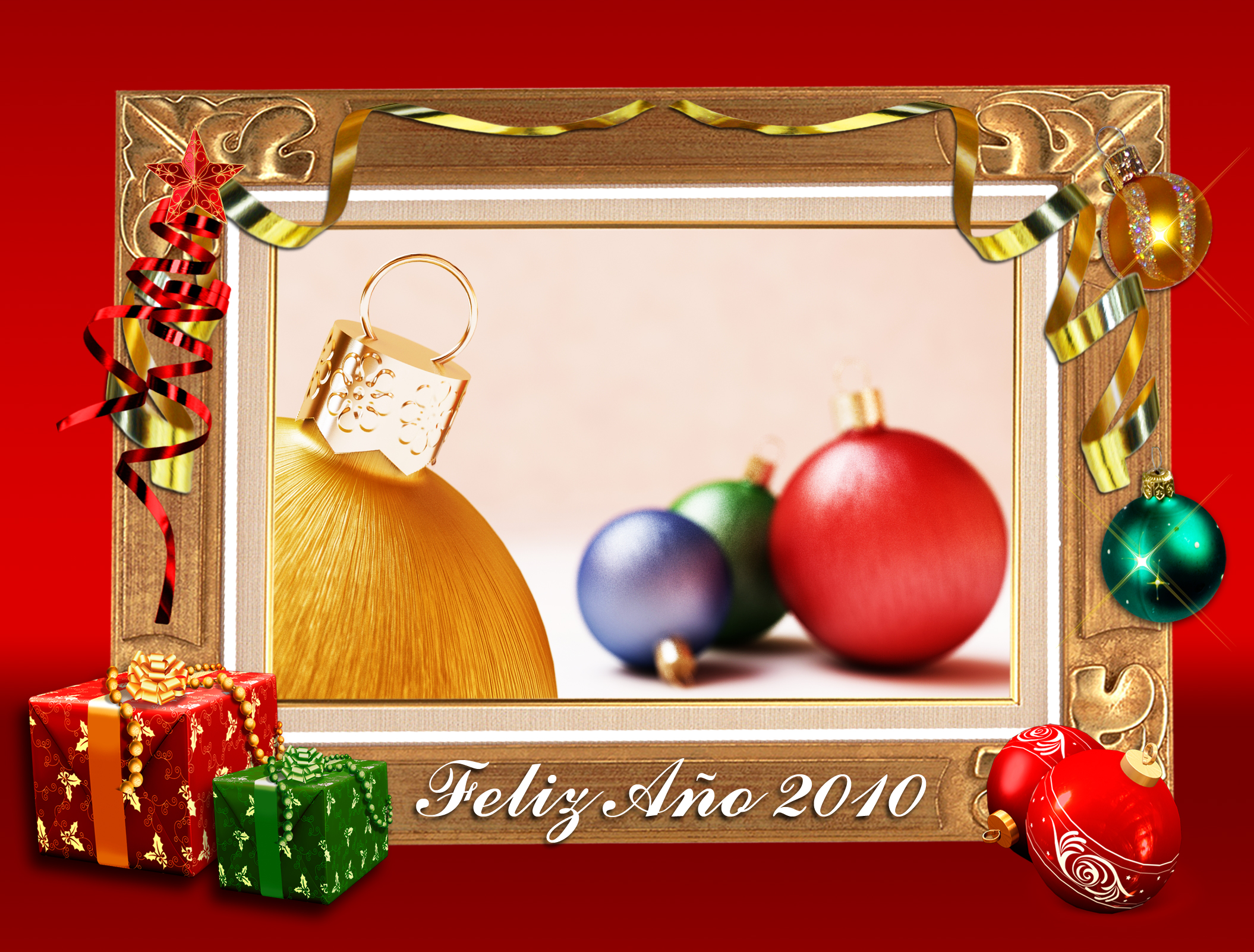 Saludos amigos. Gracias por sus buenos deseos, espero este año sea muy bueno para todos nosotros. Mluke, la imagen que está dentro del marco está hecha en 3ds Max, el resto es hecho en Adobe Photoshop para adornar.