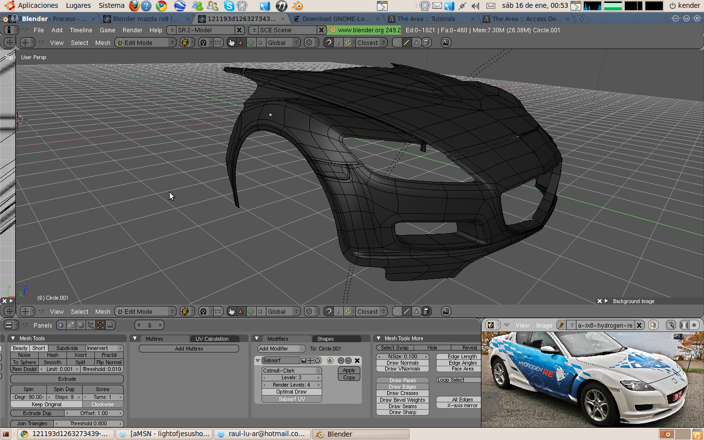 Bueno después de haber trabajado un poco en 3ds Max 2009 con un BMW visión ed el cual no e terminado todavía, aquí me presento con mi software de diseño 3d favorito (blender), en este caso con un Mazda rx8.