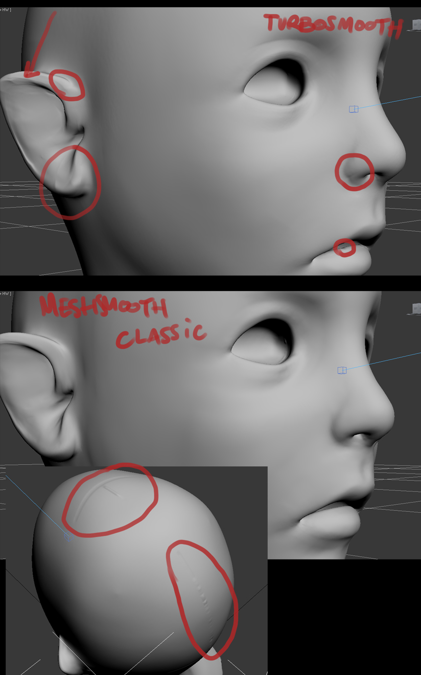 Con MeshSmooth en modo classic parece que la cosa mejora, pero en las zonas donde hay costuras se rompe todo.