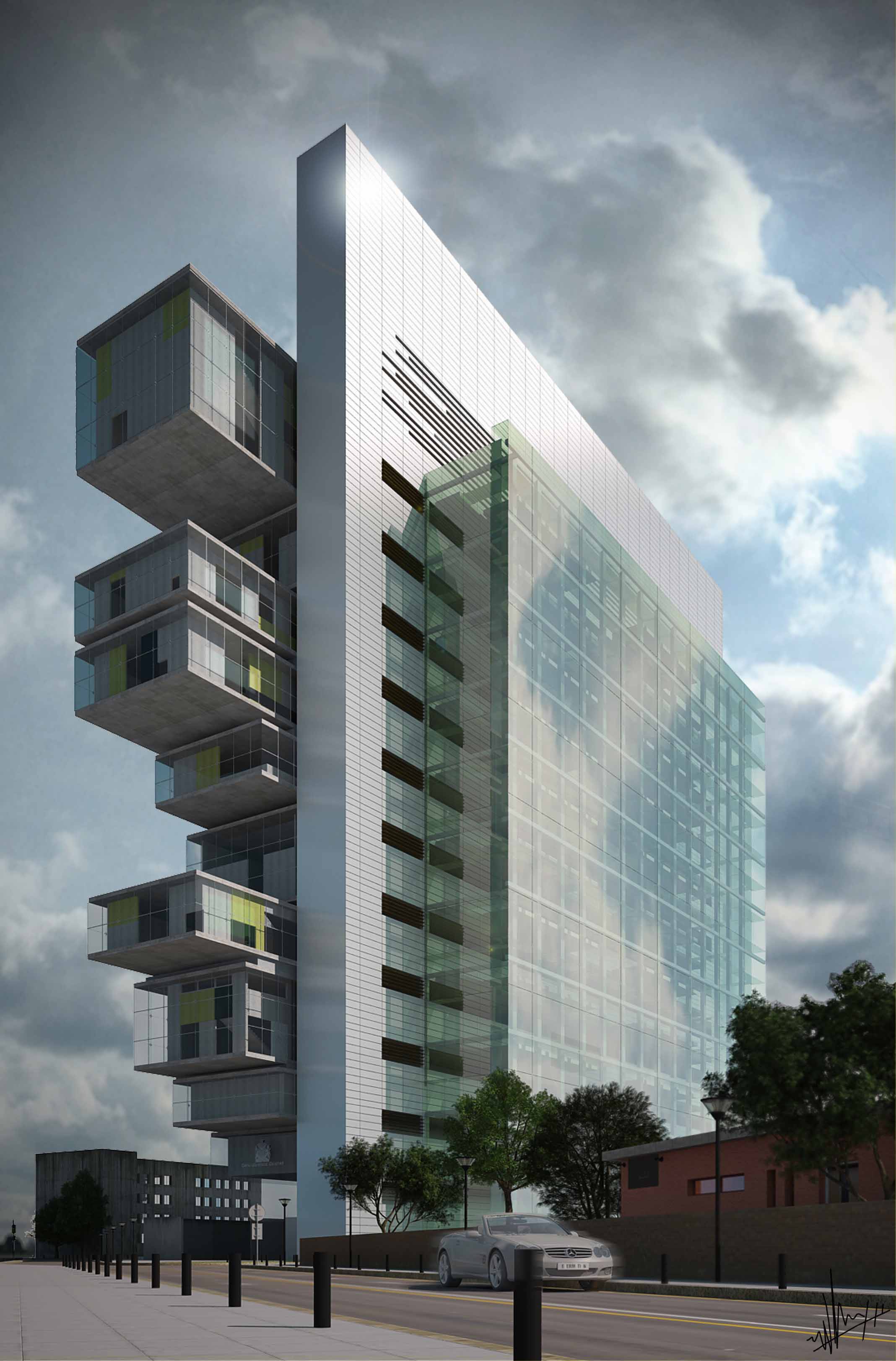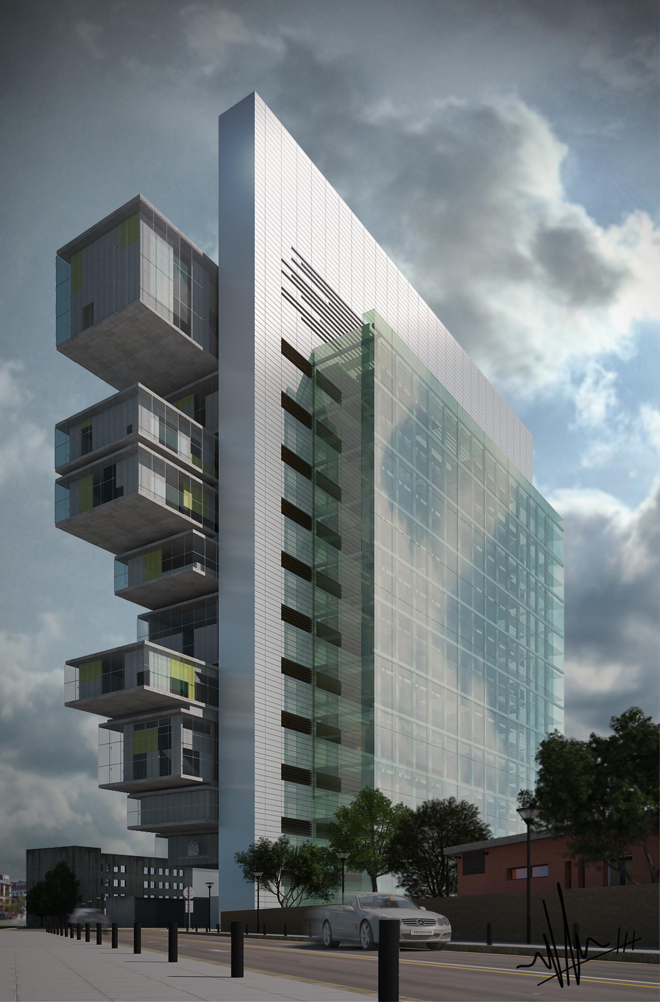 Posdata: el edificio es el centro de justicia de Manchester del equipo australiano de arquitectura denton corker Marshall.