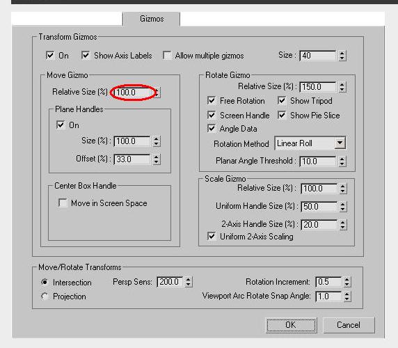 En el grupo move gizmo en la opción relative size lo pones a 100 y listo.
