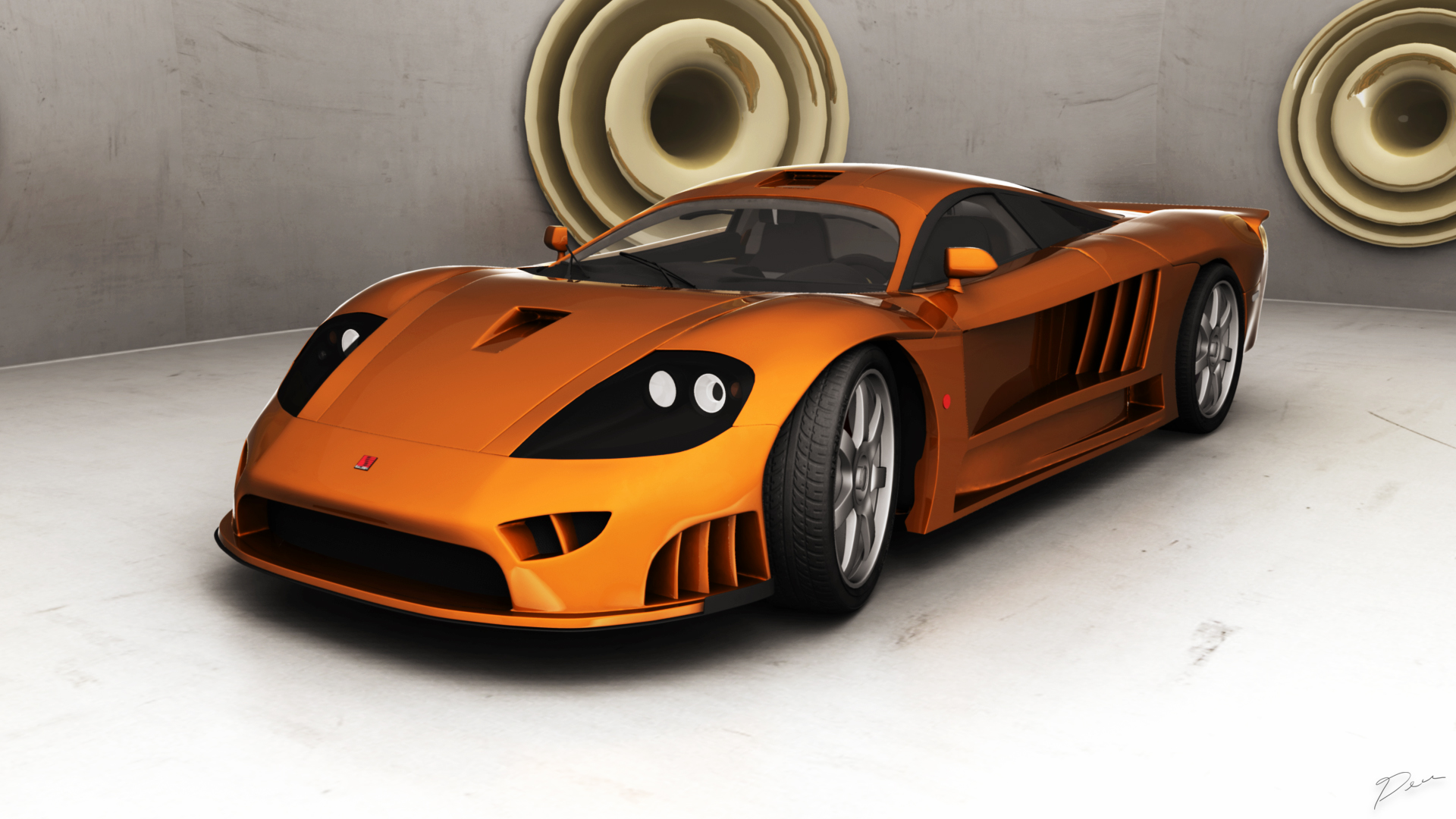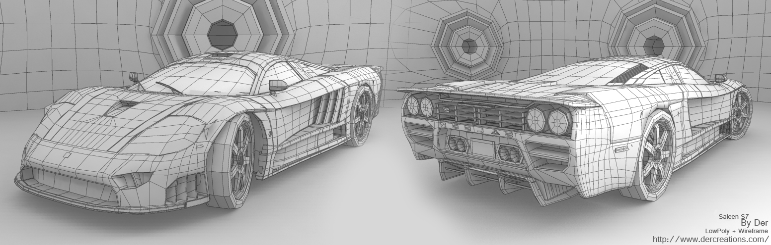 Diseño personal de un salen s7. Con un acabado sencillo en el interior. Y una fotografía de la versión en lowpoly y con los wireframe.