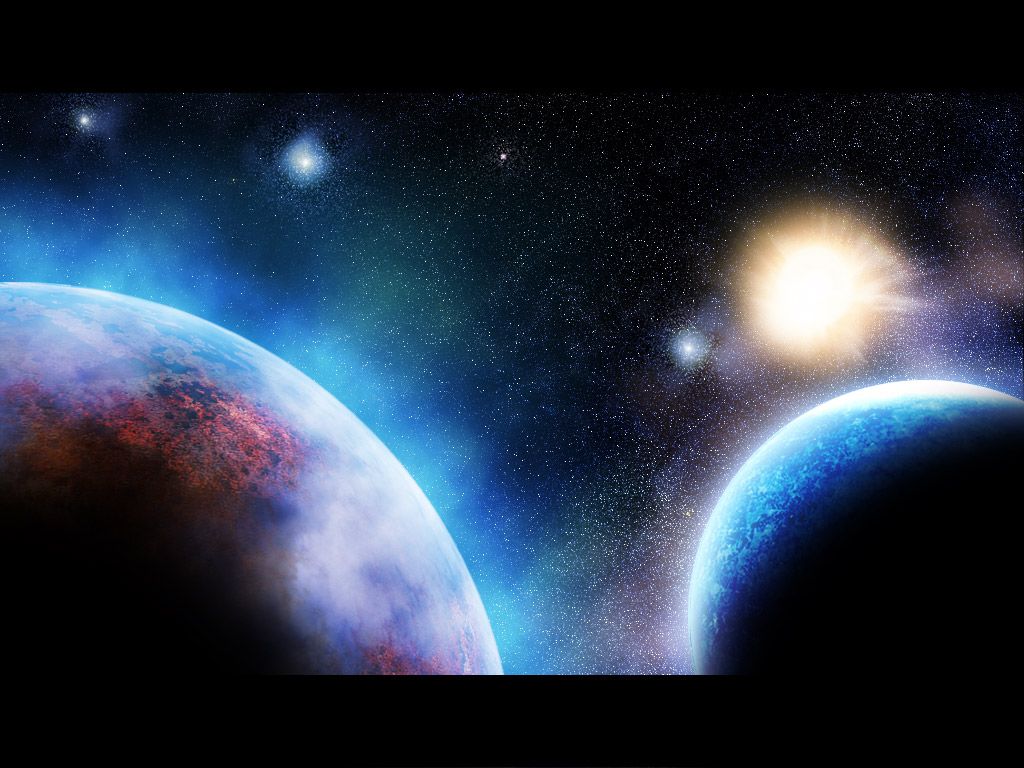 Que cosa más bonita. Me parece apreciar un aumento un poco raro de estrellas (puntos blancos) alrededor del planeta azul (el de la derecha). Te está quedando muy chulo. Saludos.