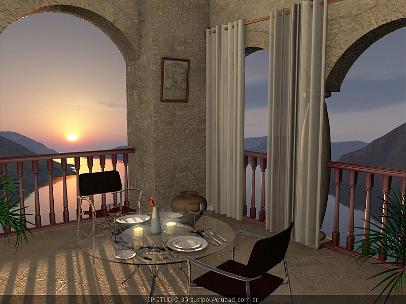 Muchas gracias evolutionpro, realmente me gratifica se note el esmero y el esfuerzo, ahora, ya lo que estoy terminando de ajustar sería, un toque de color de más atardecer, ensanchar en la unión capitel-columna y mejorar esas cortinas, quizás ver de conseguir también se note más la textura mapeada de madera de esas barandas que siguen sin convencer.
