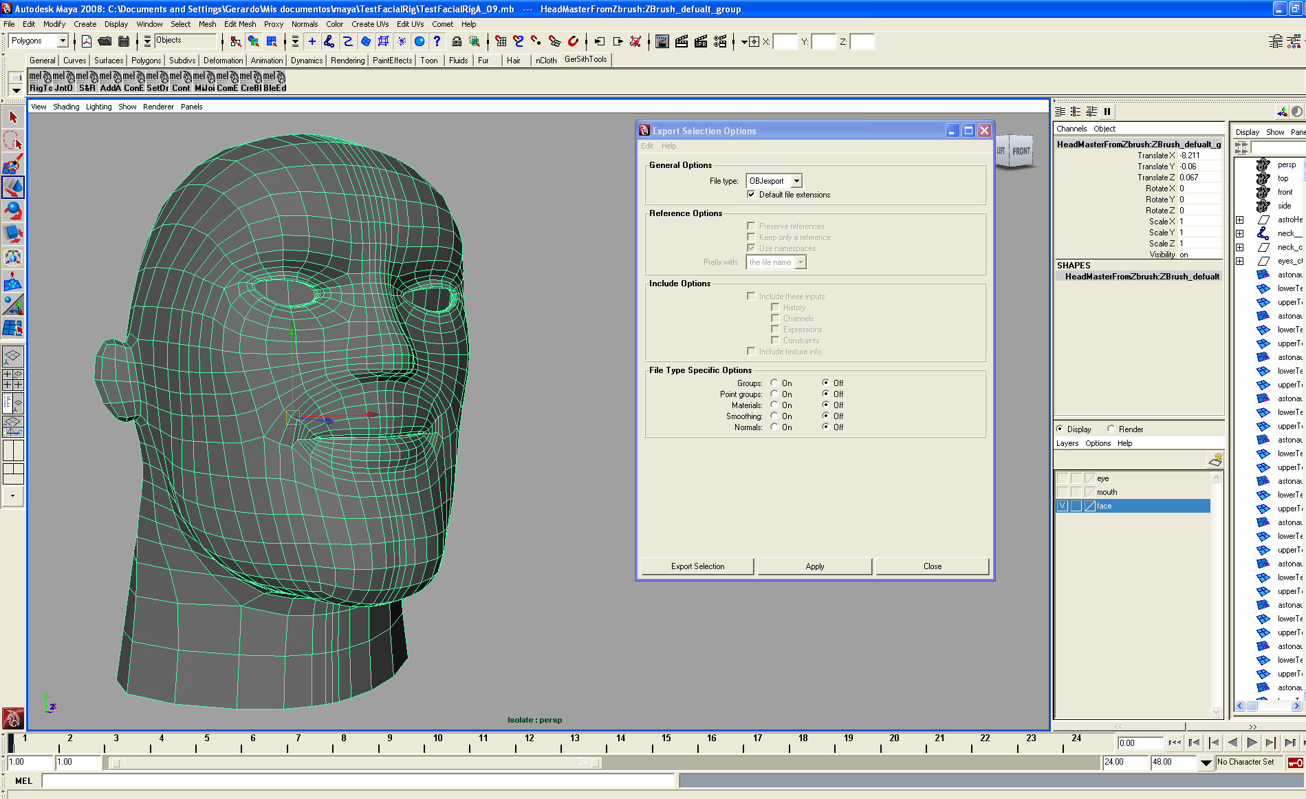 Exporto la geometría (*.obj) al ZBrush (foto01).