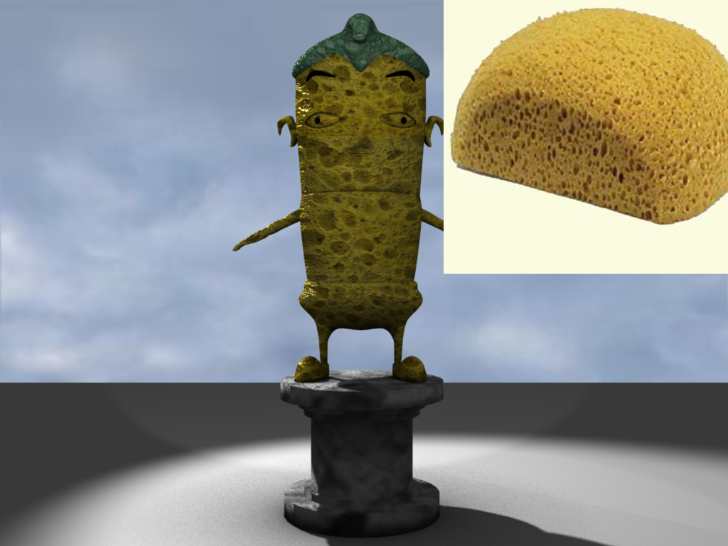 Correcion a Iherrero: Irene, aquí te hice unas correcciones para que vayas viendo con tiempo. El personaje de esponja, está bien pensado, el tema es que, al verlo primero que parece es goma. Una material cercano a la esponja da piedra, y es un tema muy difícil lograr que sea creíble, pero como dije, ya lo veremos bien.