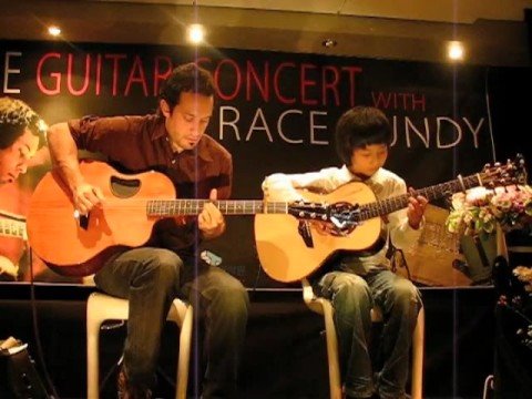 Se llama shunga jung, es coreano, tiene 14 años y es ya toda una celebridad en YouTube con más de 40 mil suscriptores en todo el mundo (el surcoreano más popular en el indexador de vídeos). Lleva unos 3 años tocando y aspira a convertirse en un gran guitarrista en el futuro.