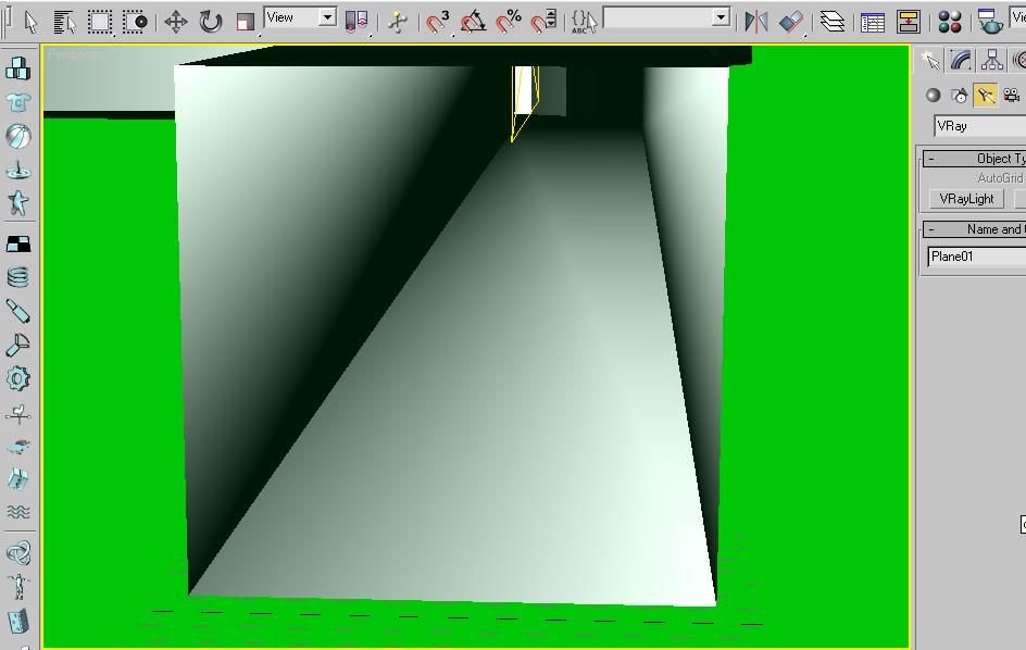 Ahora me veo con un problema, y es que no consigo iluminar de ninguna manera el interior del pasillo, o me sale negro o bien me sale del color uniforme de la luz, es decir, si pongo una luz Vray blanca me saldrá el render todo blanco, sin distinguirse las esquinas y demás (he probado a disminuir la intensidad y nada).