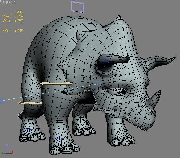 Bueno gente, empiezo en este foro mostrando un trabajo que estoy haciendo, es el modelo de un triceratops que quiero animar.