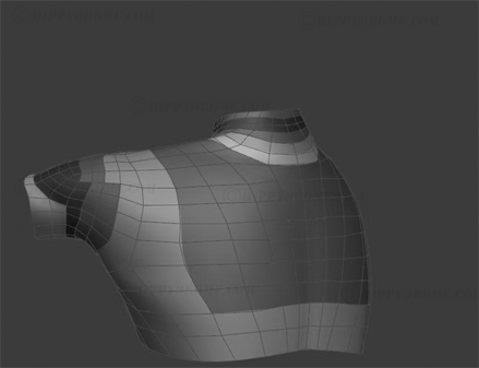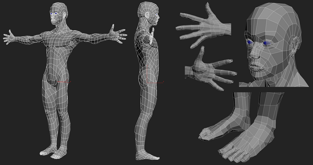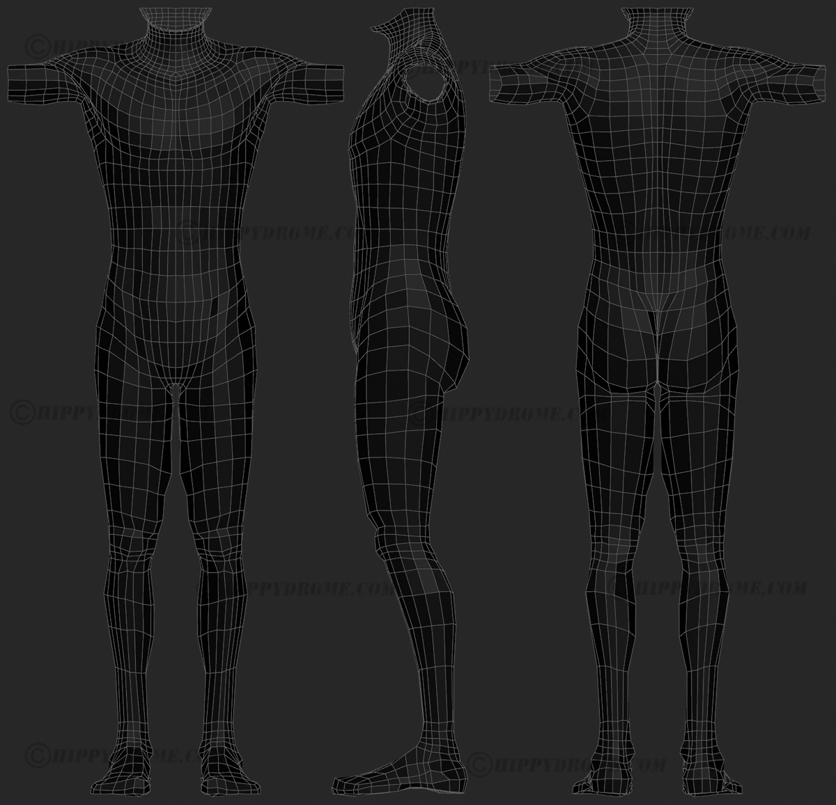 El otro modelo (no recuerdo de dónde lo saque) presenta una topología más compleja, las líneas siguen la orientación de los músculos que hay debajo de la piel.